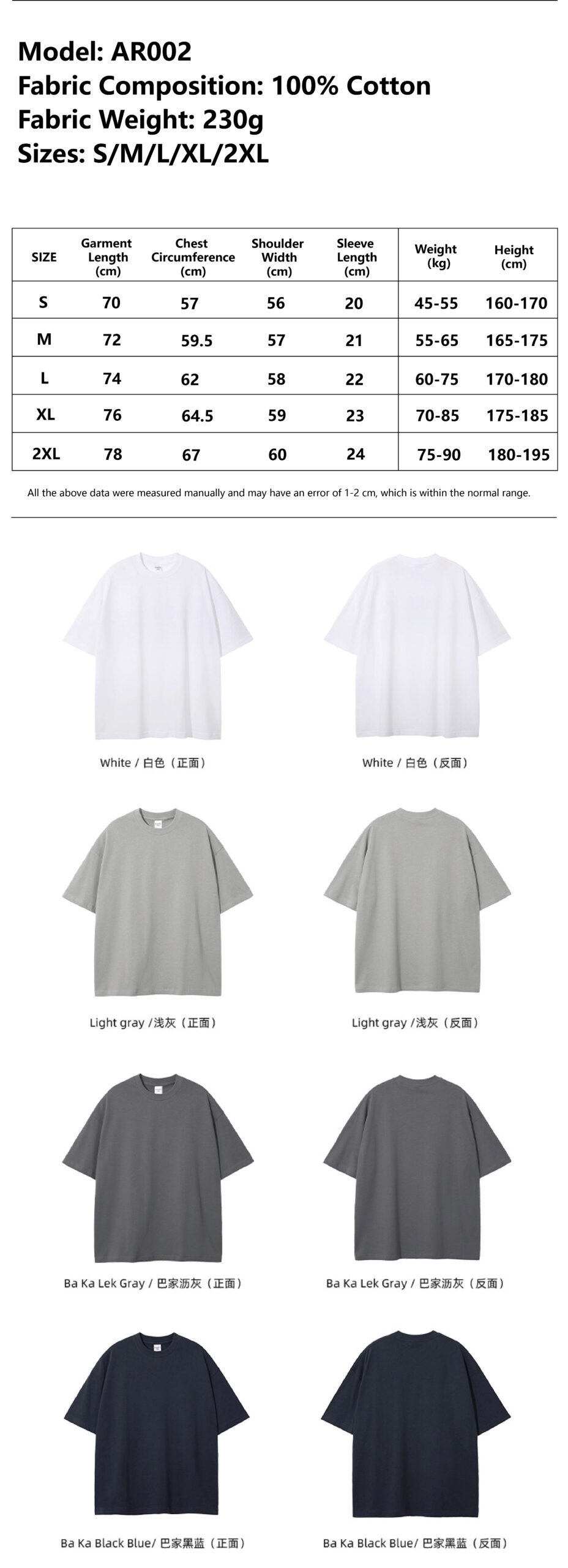 Be the first to review “Wholesale | 230g Unisex 32s Double Yarn Plain Weave 100% Cotton T-Shirt”