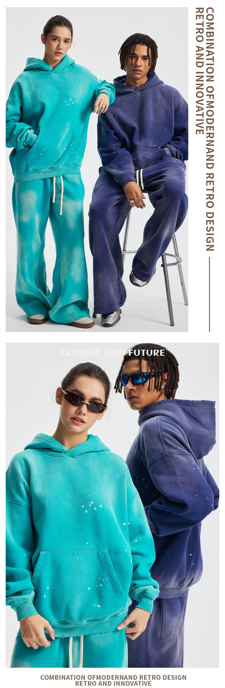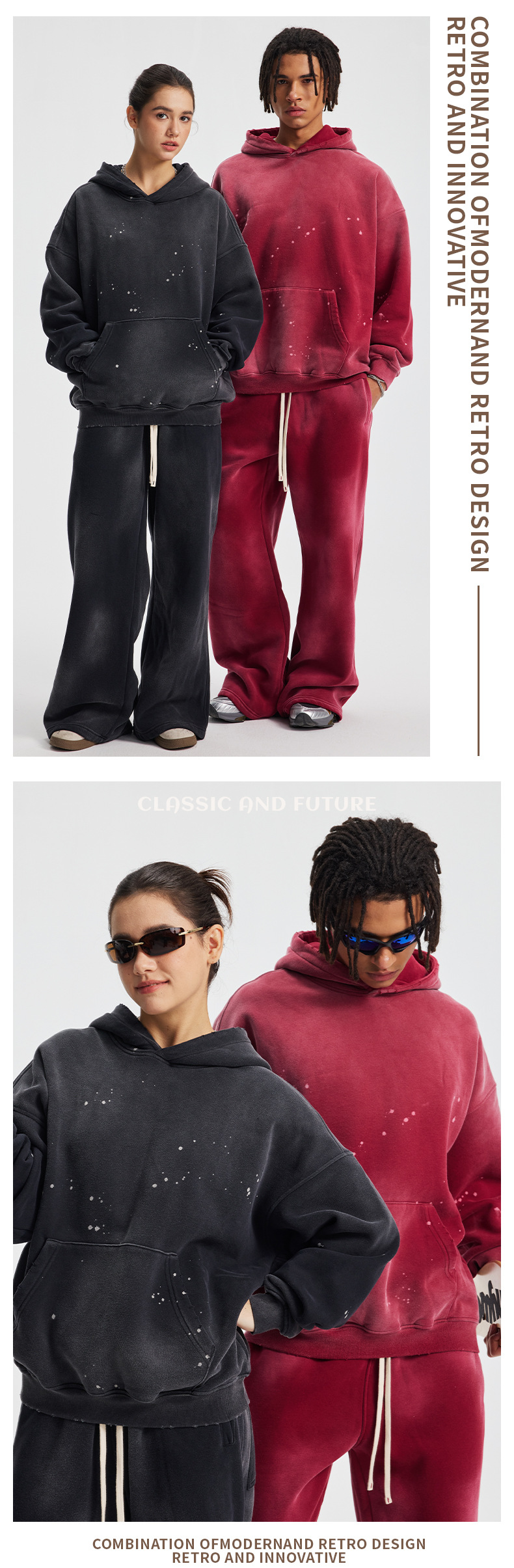 Wholesale | 360g unisex spray-dyed distressed style hoodie
