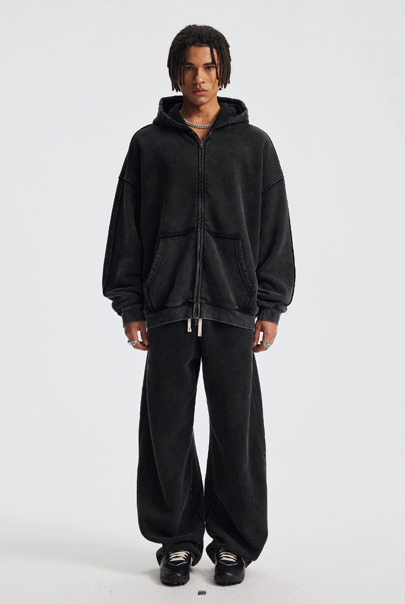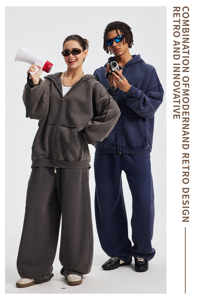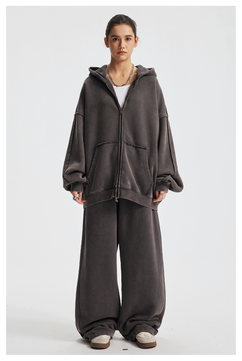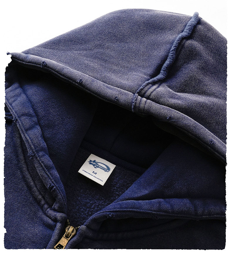 Wholesale | 370g unisex washed distressed style hoodie