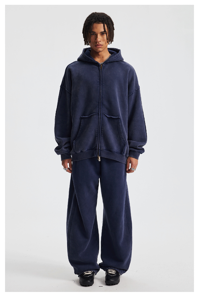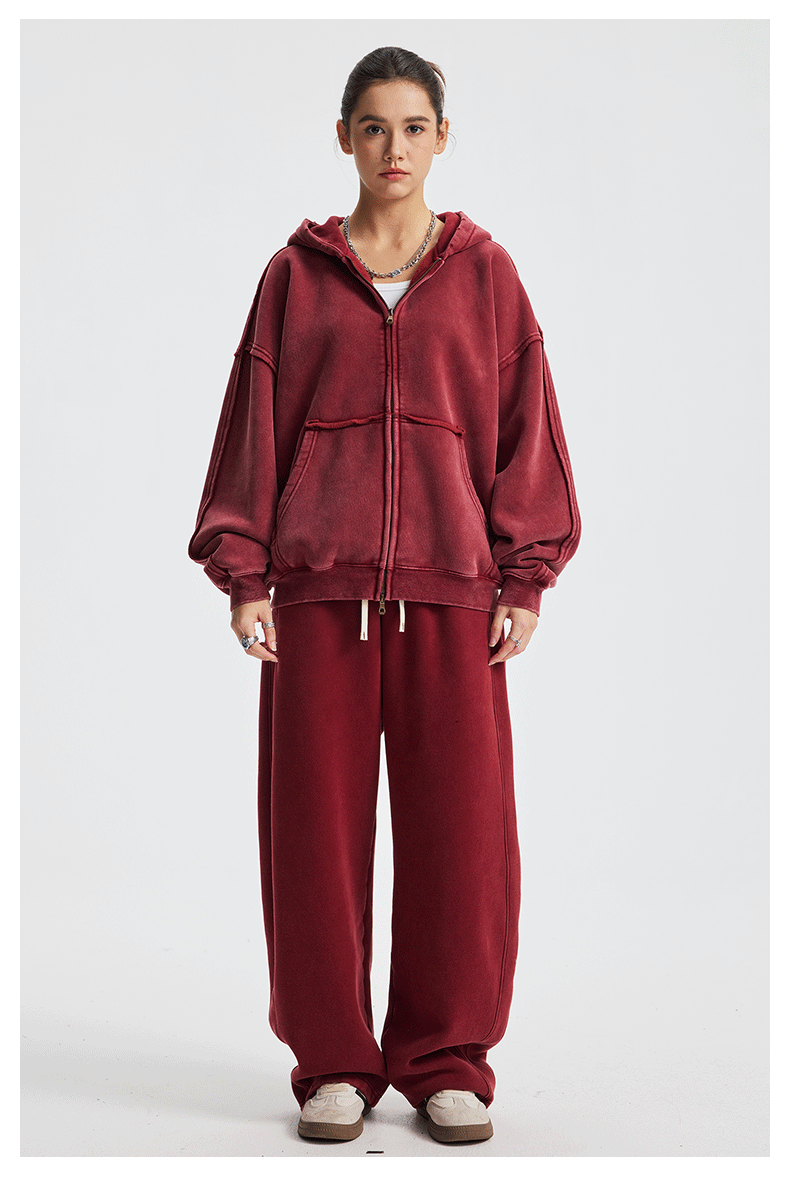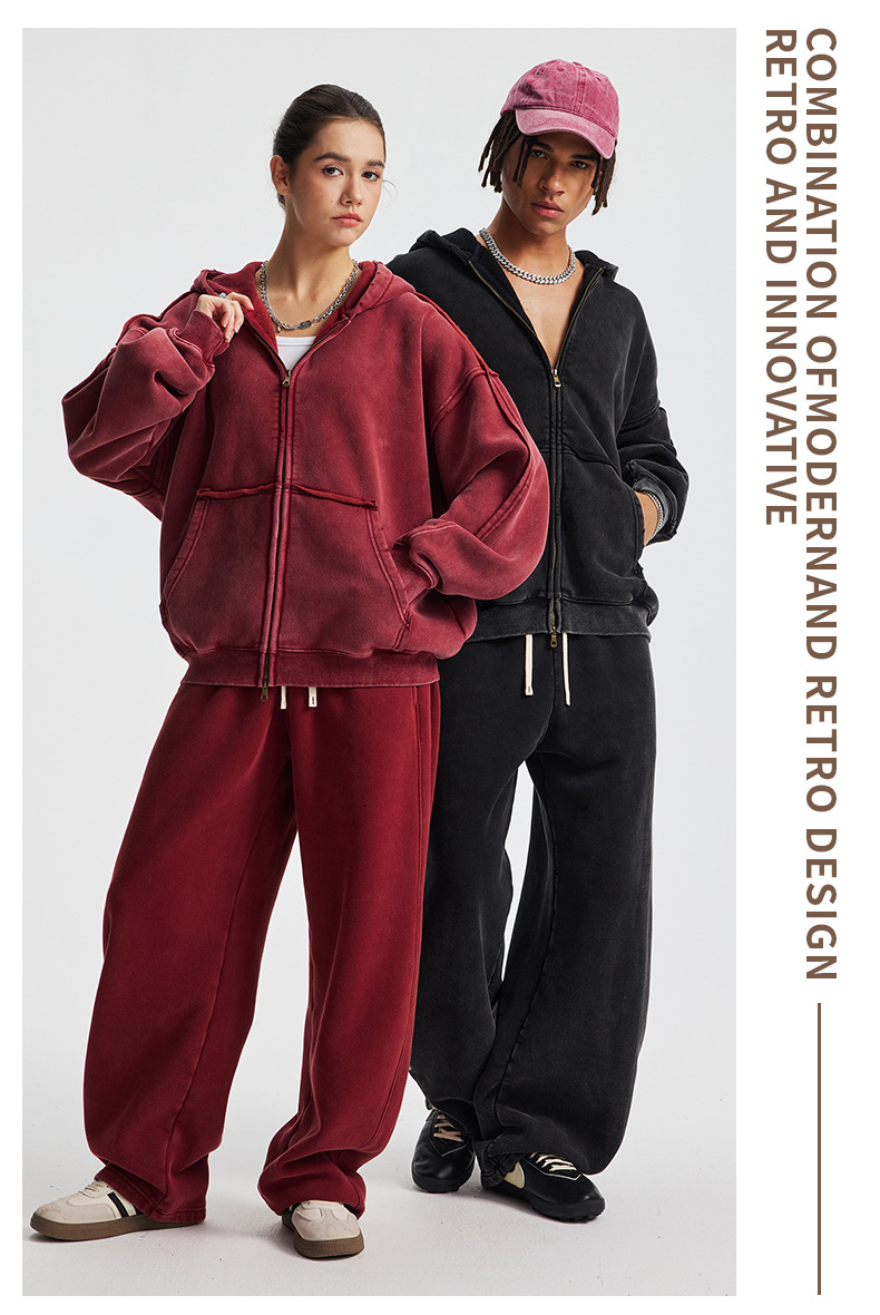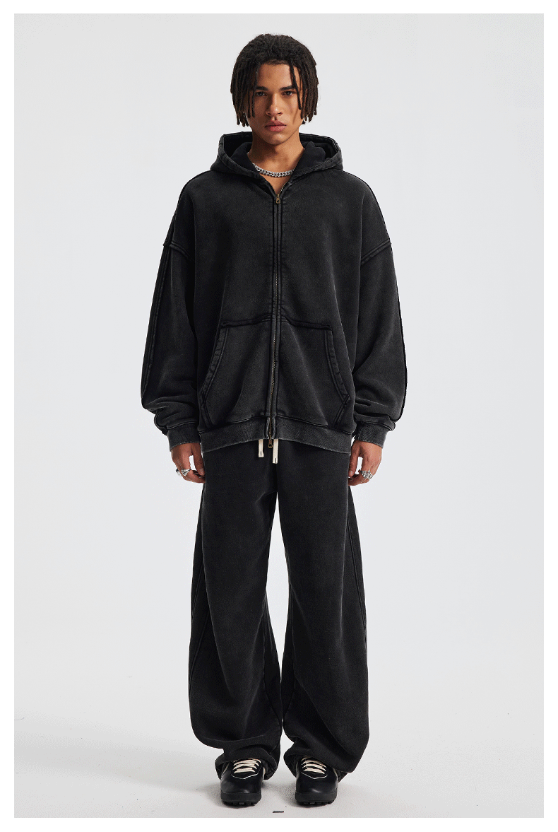 Wholesale | 370g unisex washed distressed style hoodie