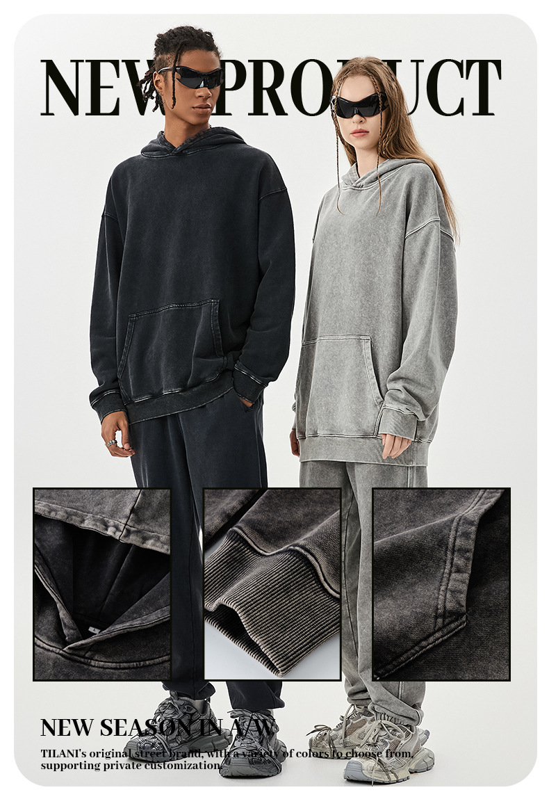 Wholesale | 420g Unisex batik washed fabric hoodies